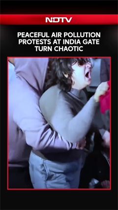 Peaceful Air Pollution Protests At India Gate In Delhi Turn Chaotic A group of protesters demonstrating at the India Gate over rising air pollution in Delhi-NCR...